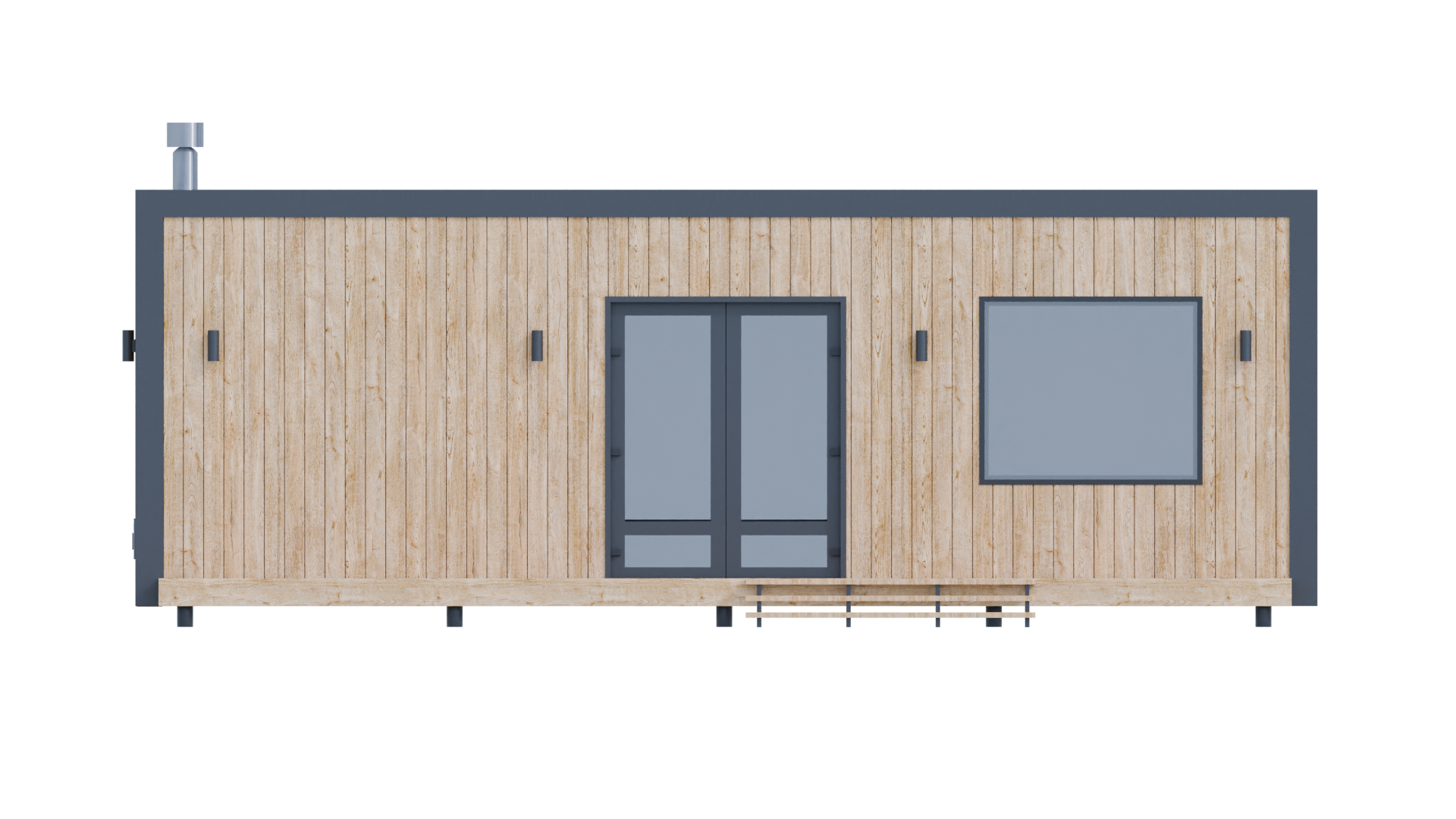 Пространство бани тщательно организовано: здесь предусмотрена удобная комната отдыха с доступной опцией панорамного остекления и полноценная парная, укомплектованная печью, каменкой, нагревательным баком и деревянными полками. Модульная каркасная баня в Подмосковье рассчитана на комфортное одновременное посещение 4 человек, создавая идеальные условия для релаксации.